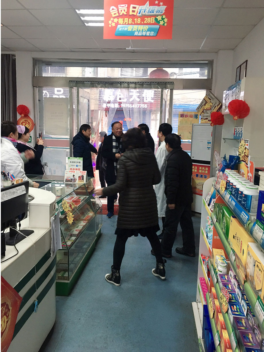 視察中,董事長江鴻方詳細詢問藥店的經(jīng)營狀況,并對職工辛勤的工作給予肯定。就店內(nèi)美化工作提出具體要求。