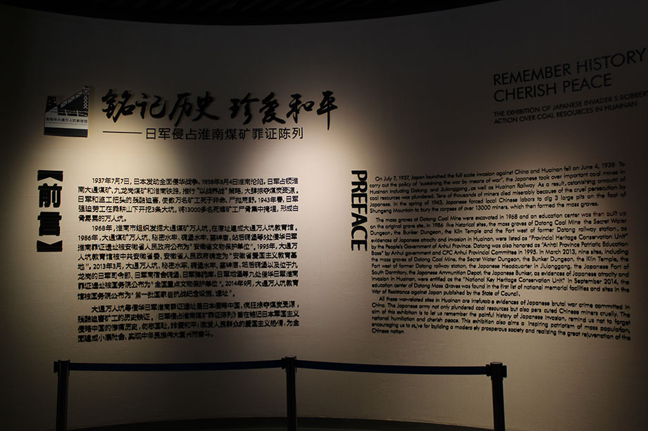 大通萬人坑教育館位于淮南市大通礦南,始建于1968年,全館占地面積約31000平方米,現展廳依次有教育館概述、日寇侵占大通期間布局沙盤、礦工生產生活用品用具、礦工上下工流程泥塑、礦工作業場景、日寇殘害礦工刑具、大病房概況、三條白骨大坑、秘密水牢等。展廳通過107塊陳展圖板和各類實物展品100余件,形象的再現了日本侵略者的種種暴行和勞工的悲慘境遇。